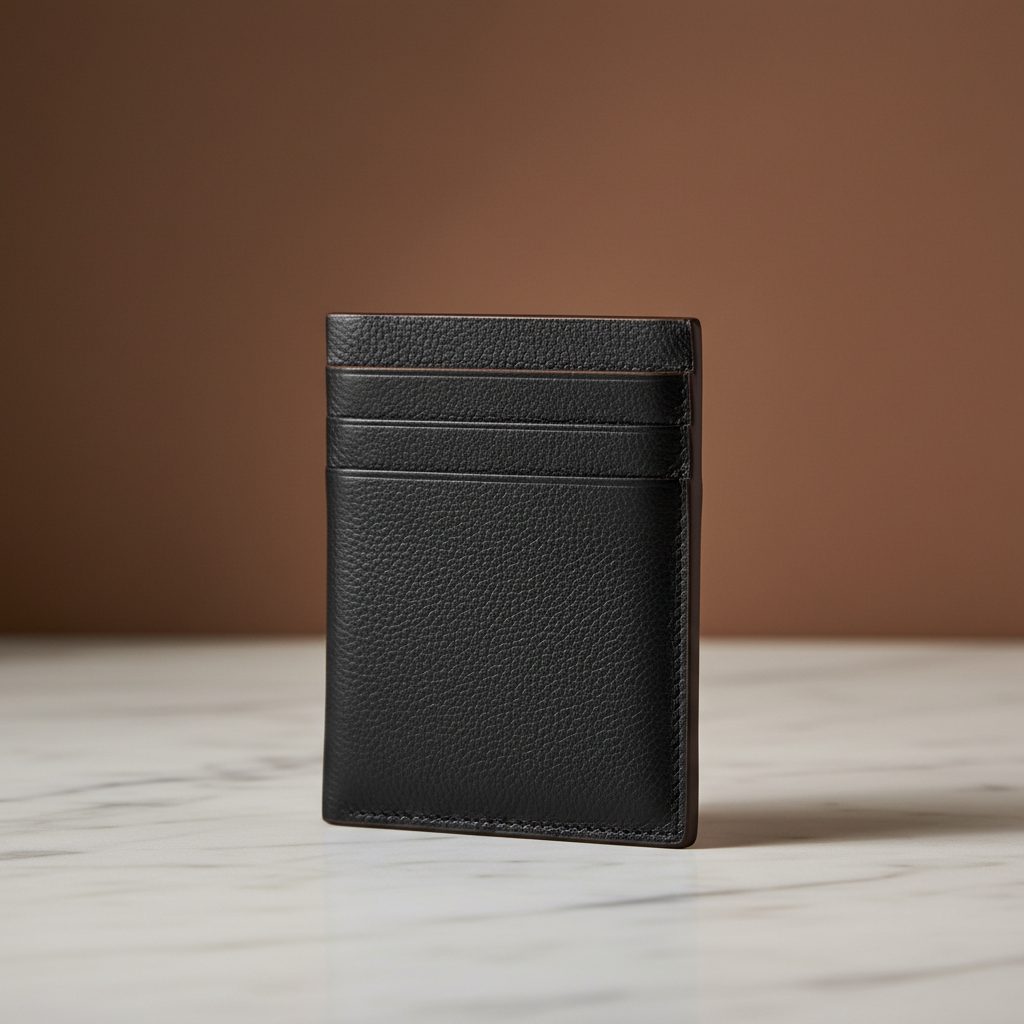 If you have begun the journey from a bulky bifold to a slim cardholder, this is your destination. We pattern it on the credit card itself — exactly 1mm of overhang on each side, no more. It carries six cards comfortably and a few folded notes in the centre. It will live in your front pocket and never bulge.