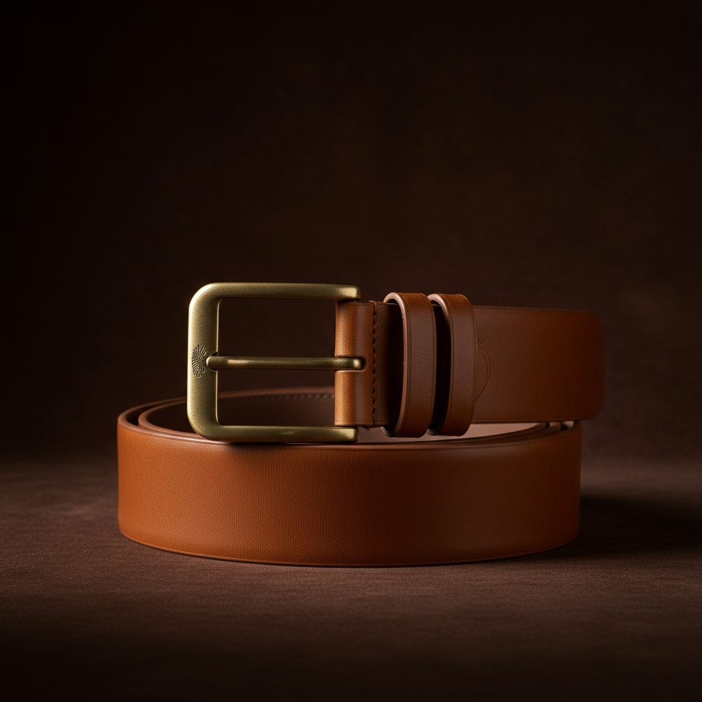 Before we made the cognac jackets, the cognac totes, the cognac wallets — there was the cognac belt. We dyed it three times until we had the colour we wanted: a brown with red in it where the light hits, brown with gold where the leather folds. The belt is what we measure new dyes against, even now.