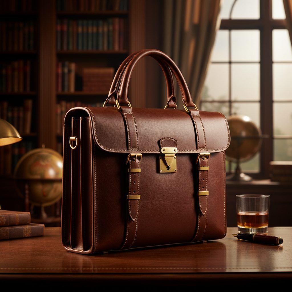 An old client — a barrister in London — once told us he had carried the same briefcase for thirty-one years and would carry it for ten more. We made the L'Executif with him in mind. The leather is vegetable-tanned in Tuscany, the hardware solid brass cast in Birmingham. The handle is double-rolled and stitched with bonded linen thread. Thirty-one years is a starting estimate.