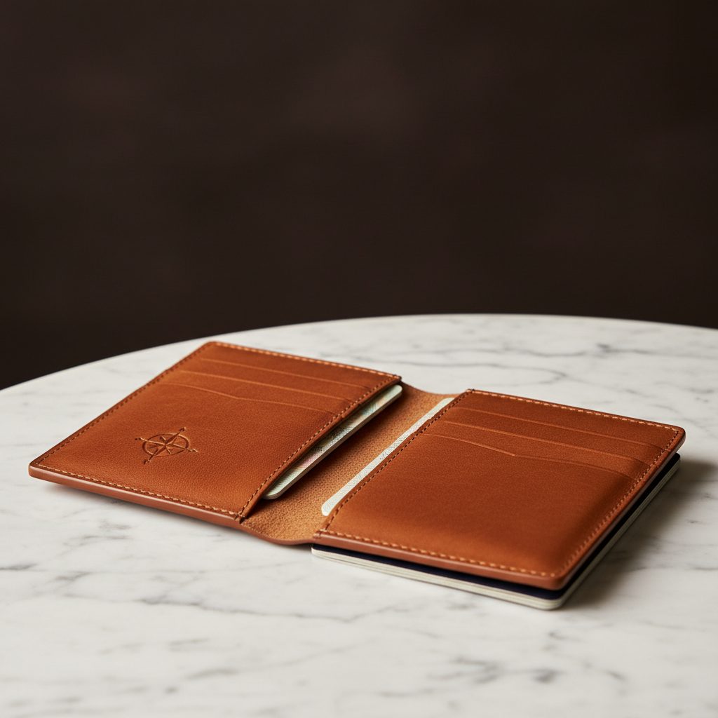 We tested the first prototype on three years and forty countries of personal travel. By the end, the leather had darkened by two shades on the edges where my thumb sat at every passport check. That patina is the point — your travelled life, recorded in the leather. We can hot-foil your initials in gold or blind-emboss them, which we recommend.